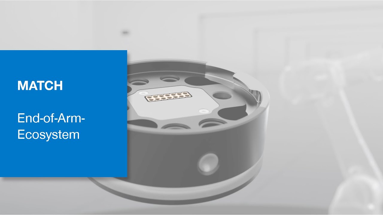 STANDARDISATION OF THE ROBOT INTERFACEThe MATCH series offers one-of-a-kind standardization potential: The MATCH robot module can be mounted to the most common robot types and acts as the connection for the entire range of MATCH-compatible end effectors. These unified robot connecting flanges offer a high degree of flexibility in the choice of applications. The attached end effectors, whether grippers or suction cups, can easily be replaced manually or automatically using the click system. Standardized and ready-to-connect solutions guarantee maximum system availability.